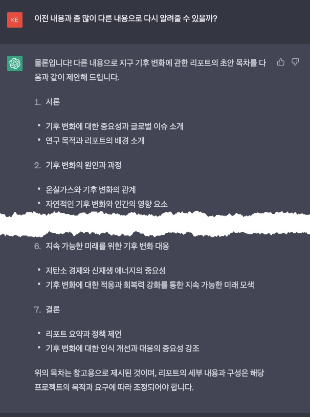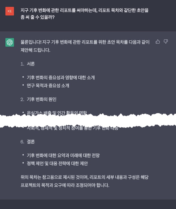 직장인이나 학생이라면 리포트를 써야 할 일이 종종 있는데요. ChatGPT를 활용해서 리포트 초안을 빨리 잡을 수 있습니다. 심지어는 마음에 안 들면 계속 새로 만들어 달라고 할 수 있어요.