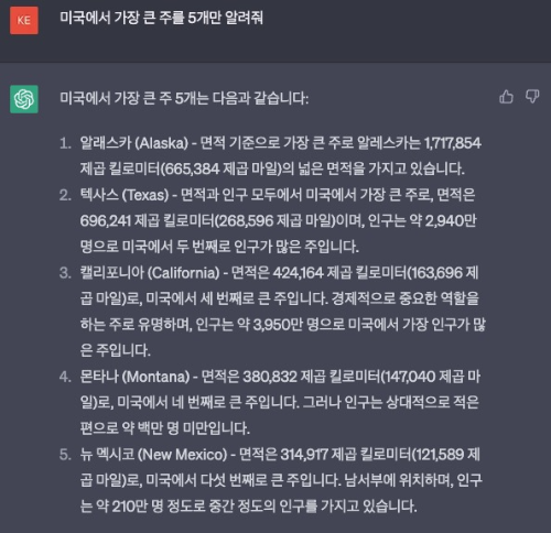 이런 점이 기술적으로는 구글도 챗GPT와 같은 서비스를 할 수 있지만 망설이고 있는 이유 중 하나가 아닐까 합니다. 이제는 검색을 해서 일일이 내용을 읽어보고 정리할 필요가 없어지거든요. 이렇게 알아서 정리까지 해 주니까요. 다른 질문도 생각나는 대로 한 번씩 해 보세요. 단, 챗GPT가 항상 정답만을 말하는 것은 아니라는 점은 주의하셔야 합니다.